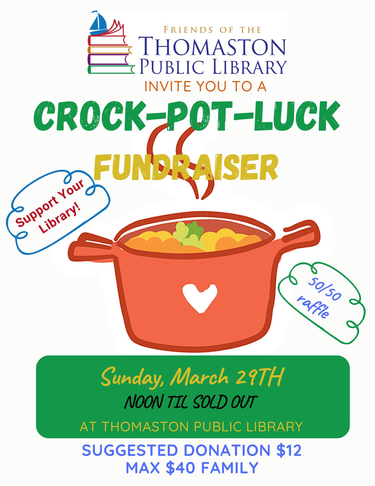 Crock-Pot-Luck Fundraiser with Friends of Thomaston Public Library!